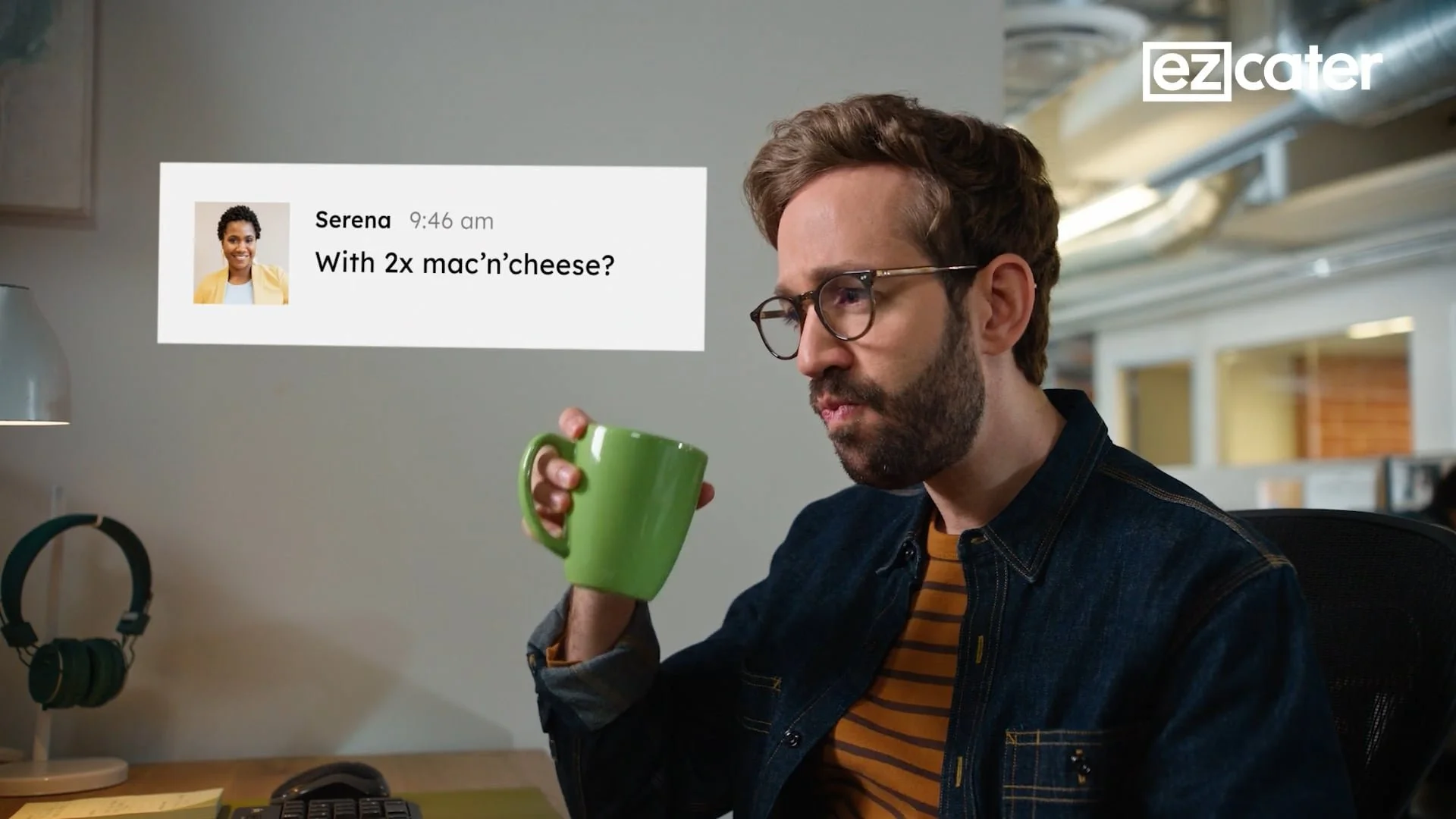 Solution: Created performance video spots that drive action and increase brand recognition by incorporating ownable business cues – sticky notes and calendar notifications. The spots are from the perspective of the order-er, presenting use cases they’re familiar with and that the platform was created for – ordering food for a group, with specific dietary needs and taste preferences, all within a tight per person budget – reinforcing that ezCater understands the challenges of ordering food for work and was developed to meet them.